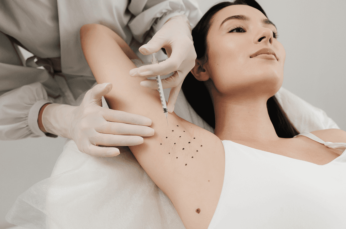 Übermäßiges Schwitzen (Hyperhidrose), insbesondere an den Achseln, stellt für viele Betroffene eine erhebliche Einschränkung im Alltag dar. Durch die gezielte Behandlung mit Botulinumtoxin (Botox®) wird die Aktivität der Schweißdrüsen reduziert und die Schweißproduktion verringert. So können Beschwerden deutlich gelindert und ein spürbar höherer Komfort im täglichen Leben erreicht werden.